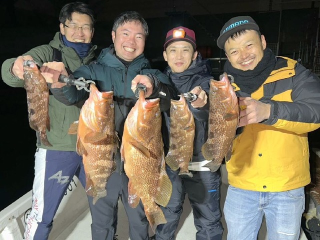 名古屋 2025年12月14日 【シーバス・キジハタ便】 AKION 名古屋釣果情報 TOPGUN名古屋では、名古屋港、セントレア周りを中心に、伊勢湾全域をエリアとし、シーバス、根魚、青物等を対象魚としています。釣りプランなど、お気軽にお問合せください。090-3300-1493 岡本まで