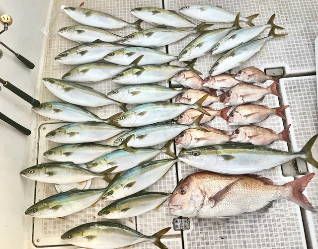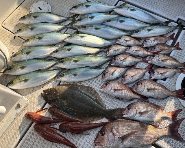 タイラバにサビキを付けたガールにホウボウがトリプルヒットし🎣他のメンバー全員に同時ヒット❗️
