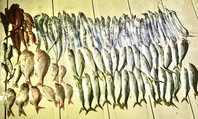タチウオ→シオ→マダイ→イワシ→マダイと駆け足💨