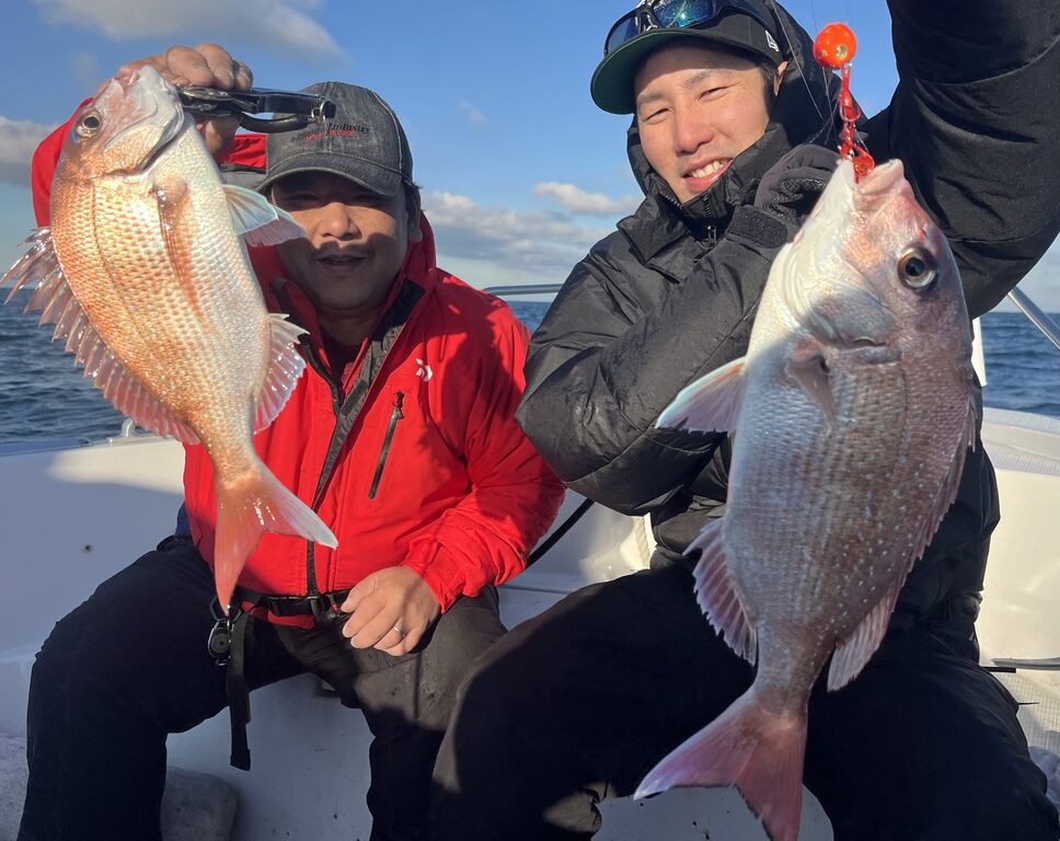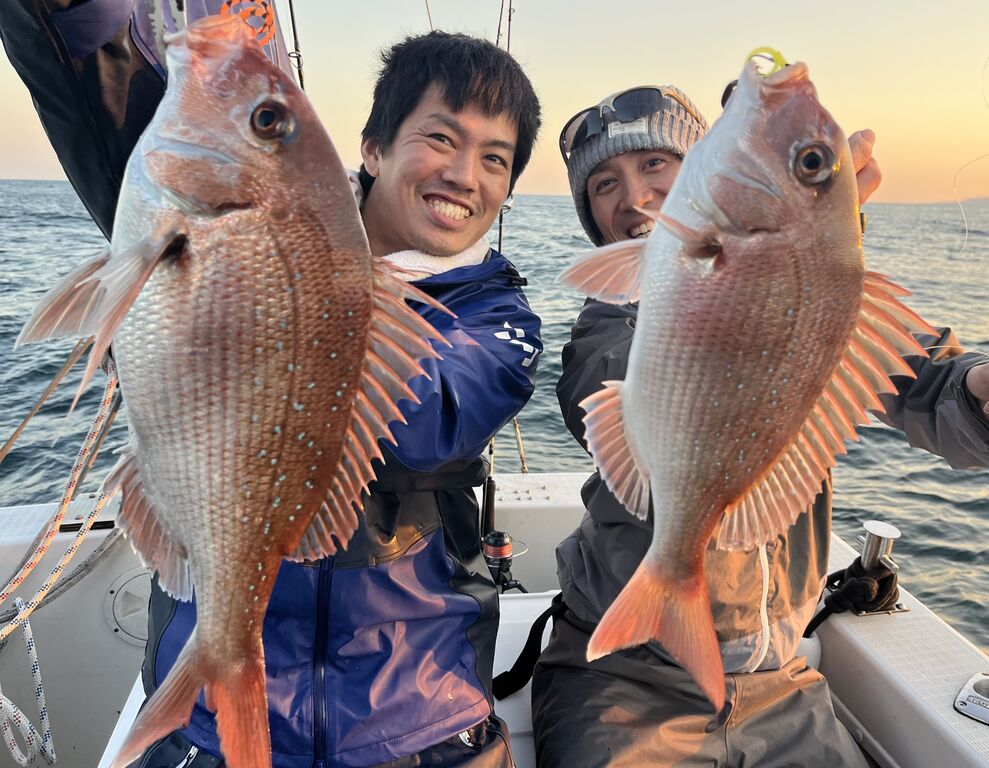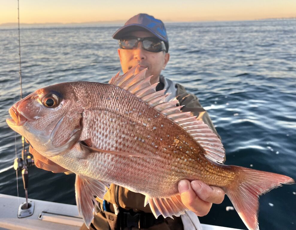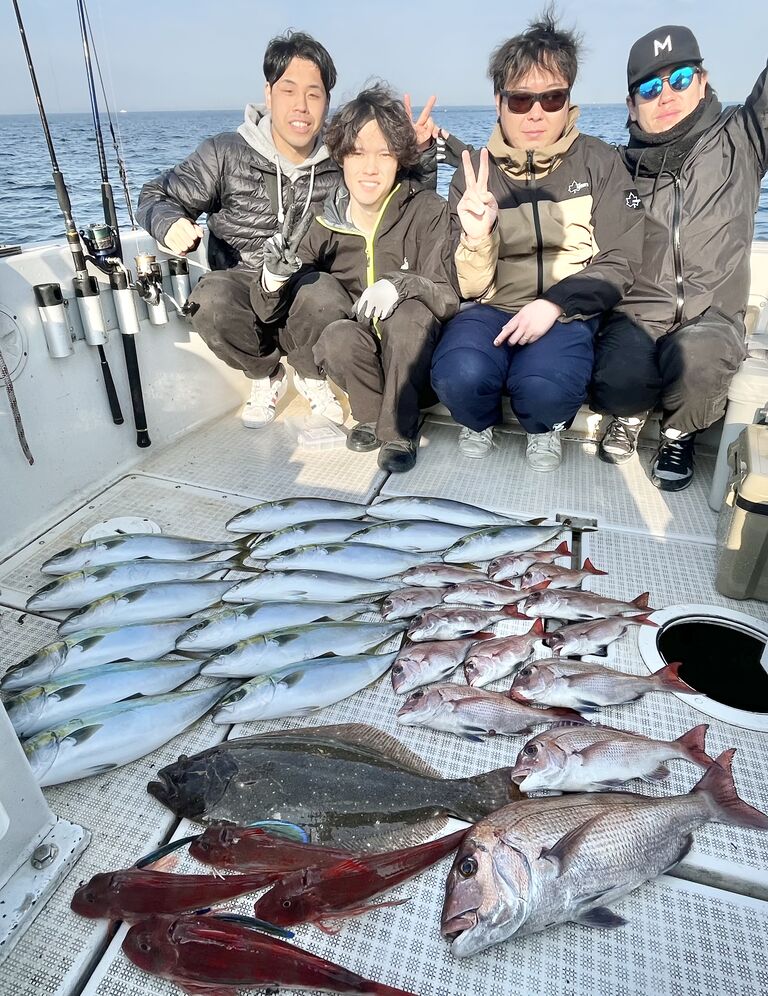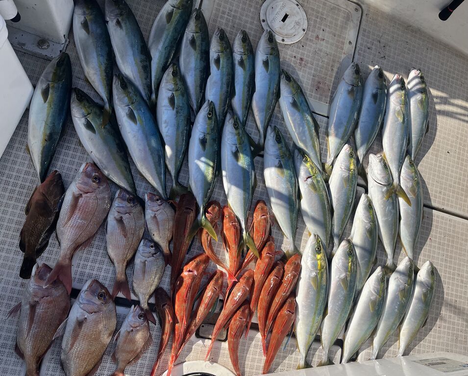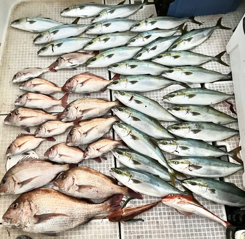 タイラバにサビキを付けたガールにホウボウがトリプルヒットし🎣他のメンバー全員に同時ヒット❗️