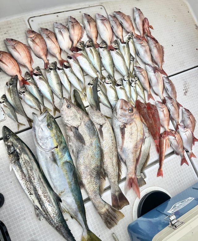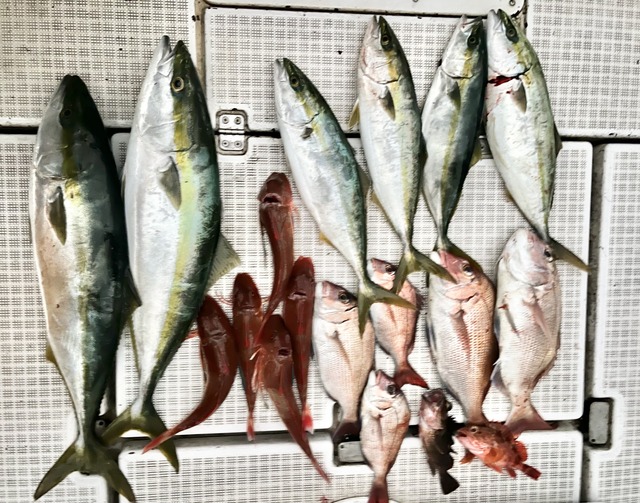 衣浦 2025年12月13日 楽しみ方いろいろ。 僚船からワラサやブリの情報がありましたが、ゲストさんからタイラバリクエストがあったので、あえて違うエリアで頑張りました。 で、タイラバ、ジギング、キャスティングを総動員してやると いろいろ釣れちゃいます。 👍