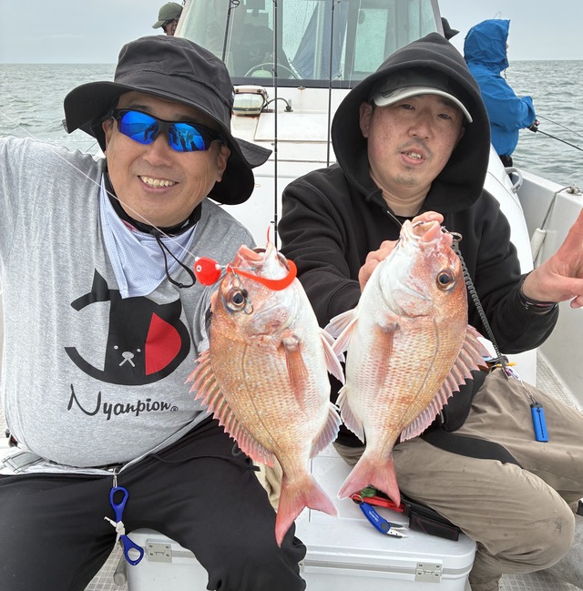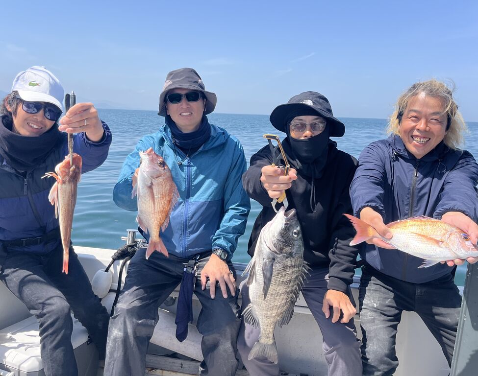衣浦 2026年04月20日 週末の釣果 久々の80㎝! いきなり、こんなの釣れちゃったモンだから期待増大しましたが、 この日はアタリが少なく難しい日でした。 皆さん、最後まで頑張って頂き、ありがとうございました。 🙂 お次はタイラバ初挑戦軍団。 生憎の大ウネリで船酔いが心配でしたから、波が穏やかなエリア限定で楽しみました。 その中に約20年前に来てくれたゲストさんが居て嬉しかった 🙂