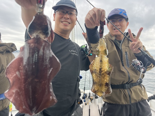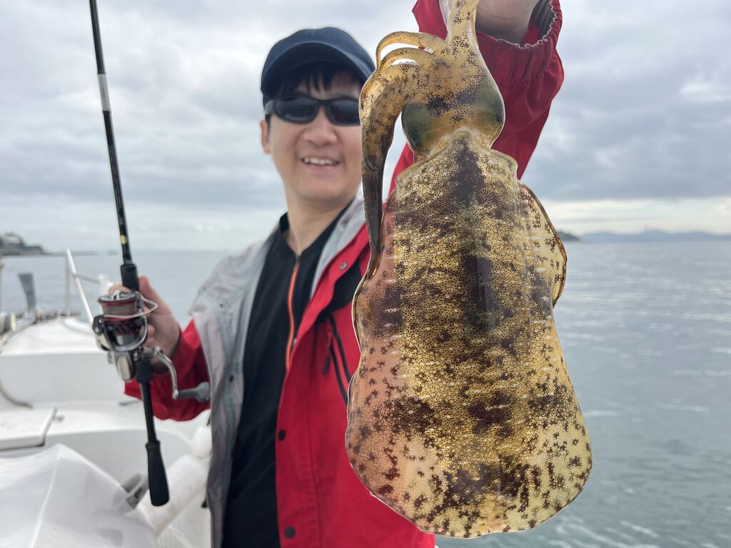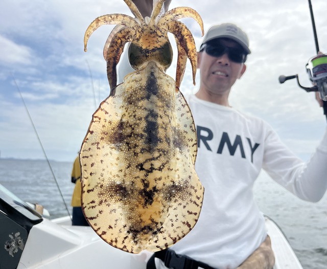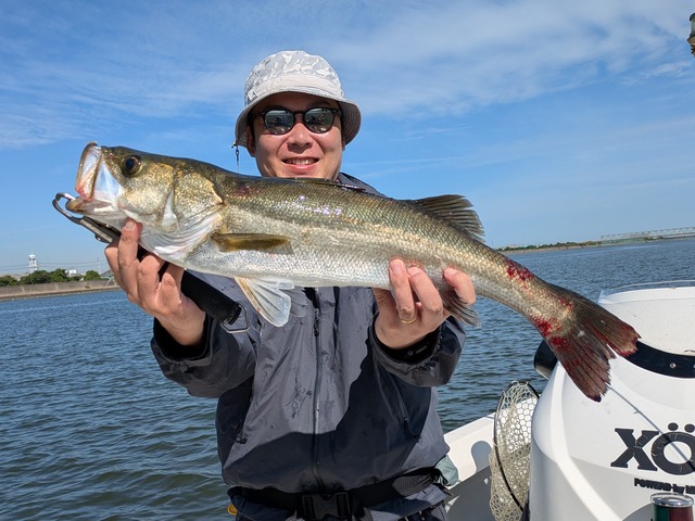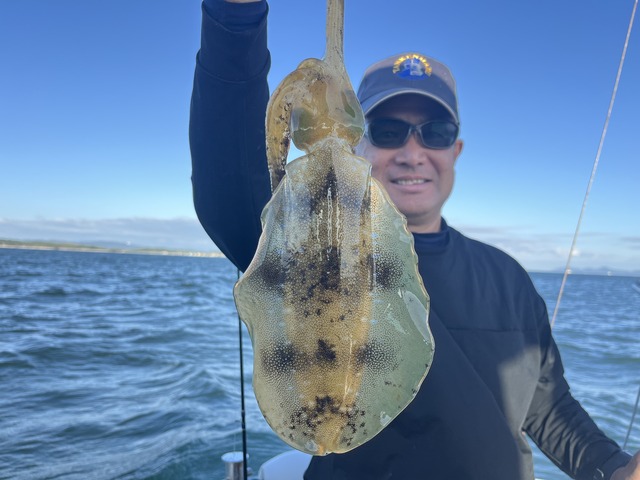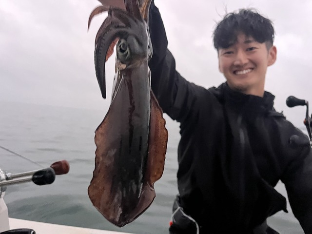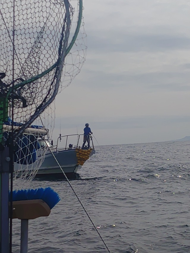 途中で、後の船に釣り具店の店長さん発見👀😆