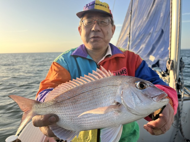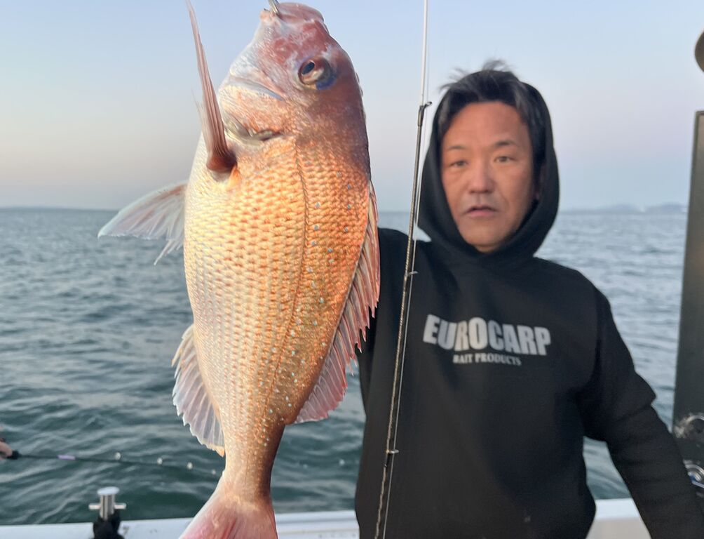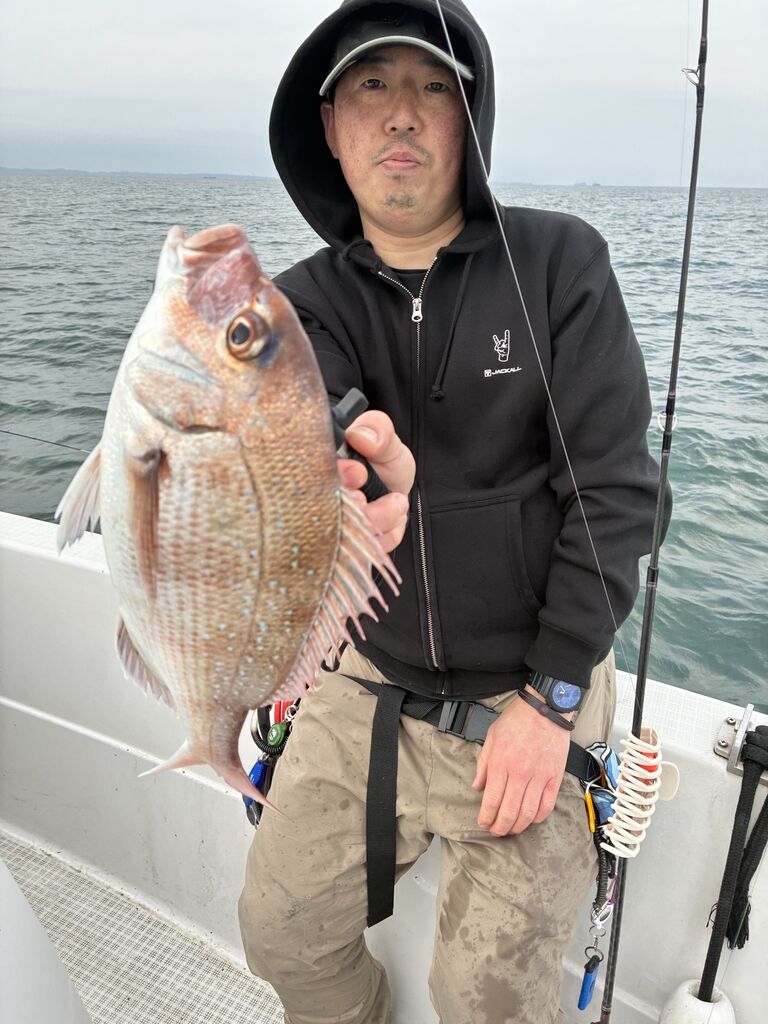 衣浦 2026年03月28日 伊勢湾の保険? 長潮、潮流無しな午前出船で釣れない気しかしない💦 ゲストさんに今日は厳しそうと保険をかけつつ頑張ってみたら デカいの釣れた! さすがに完全潮止まりになったらアタリが止まったけど、 皆さんの頑張りで釣れない保険が適用されずに済みました😂 助かったー😅