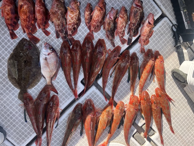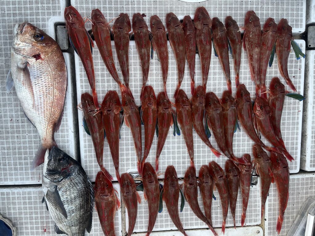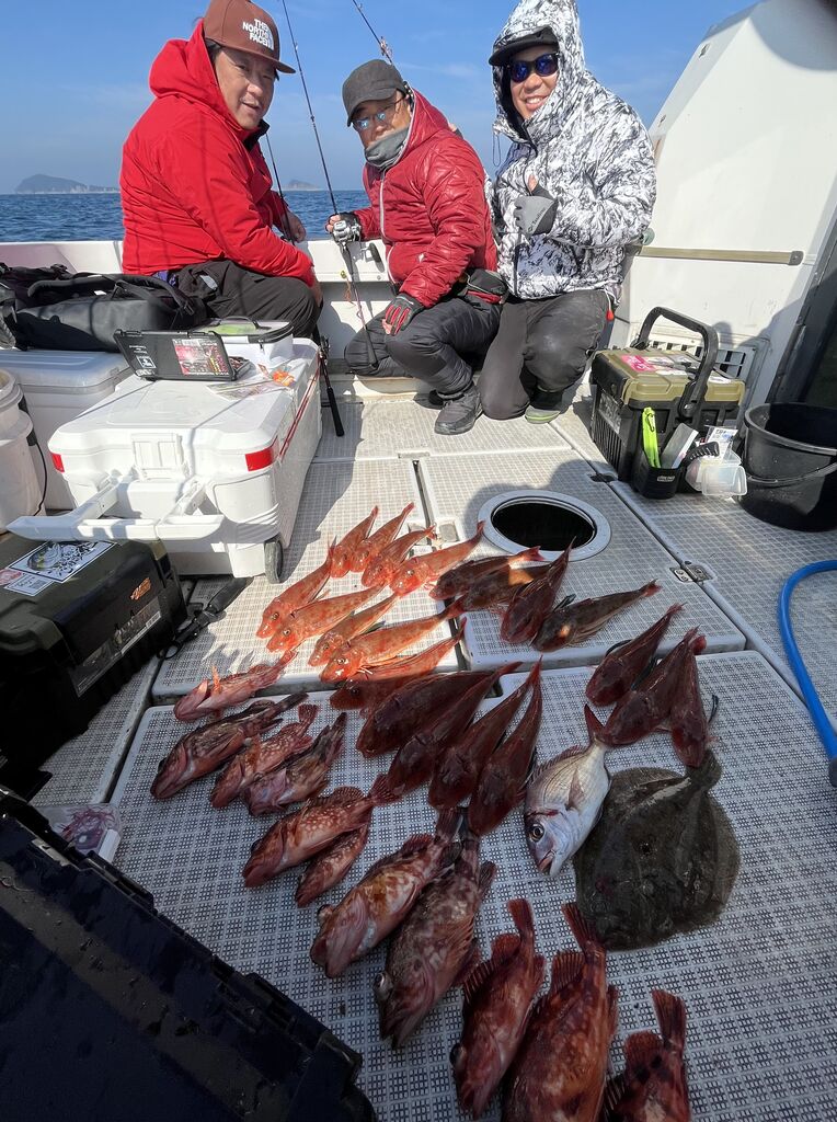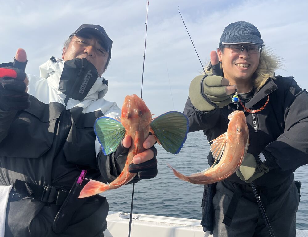 衣浦 2026年02月17日 おいしい案件😍 隙間おじさんからのリクエスト 「初心者2人に数釣りさせたいから最初から最後までホウボウ狙いで!」と言うイージーミッション。 言うなれば「おいしい案件」😍 ホウボウの巣へ直行しました。 やり切ってると嬉しい外道も登場しw 狙い通りの釣果になりました。 おいしい案件待ってまーす。