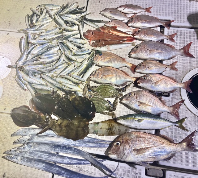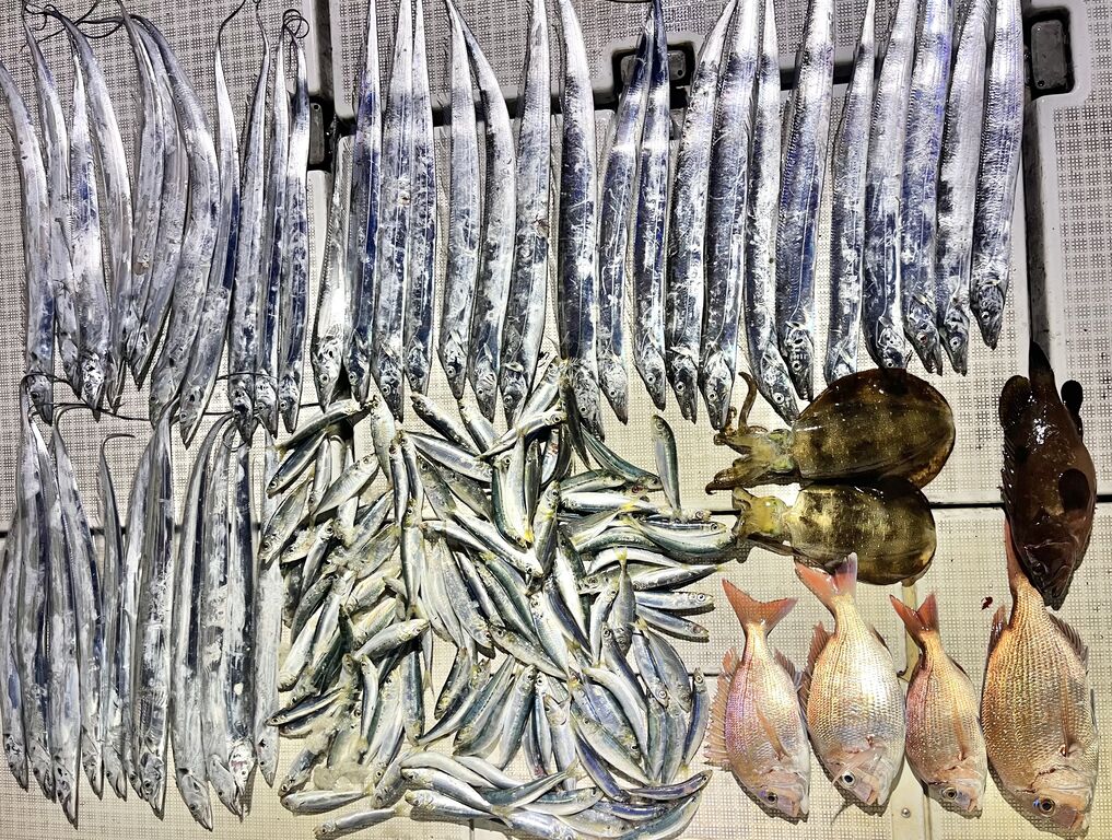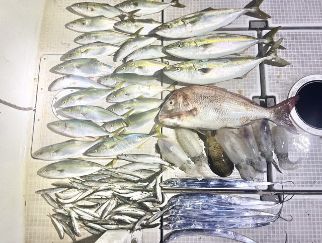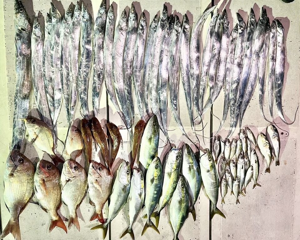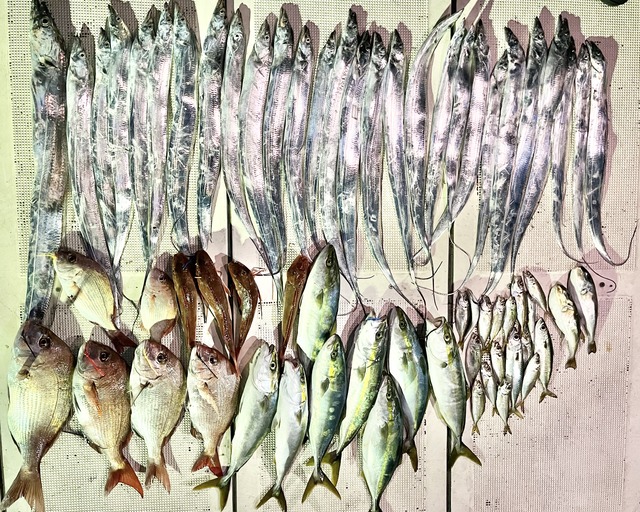 タチウオ→シオ→マダイ→イワシ→マダイと駆け足💨