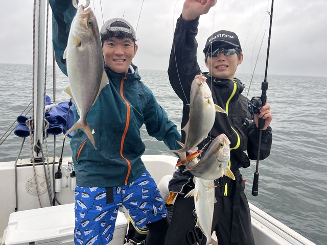 湾内の波の落ち着いたポイントでコンスタントにテンヤで釣れました。
