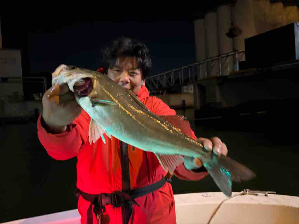 衣浦 2026年04月20日 衣浦シーバスナイトゲーム! 丁寧に明暗を通してドンっとバイト!腹パンでよく引く元気なシーバス!お次もナイトシーバス!ポイントによって反応が明確な日でした。ナイスサイズの元気なシーバスでした!