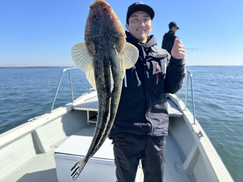 ボートフィッシング&マゴチ釣りは、ともに初めてとの事。