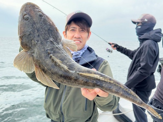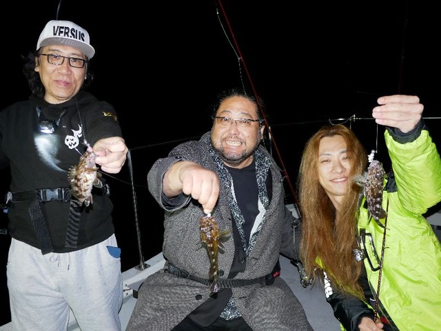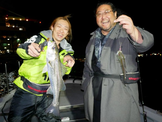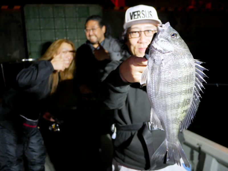 終了時刻間際、最後の ひと流しにラストマンのロッドがブチ曲がり、ドラマ魚がヒットして船上が大騒ぎ(笑)